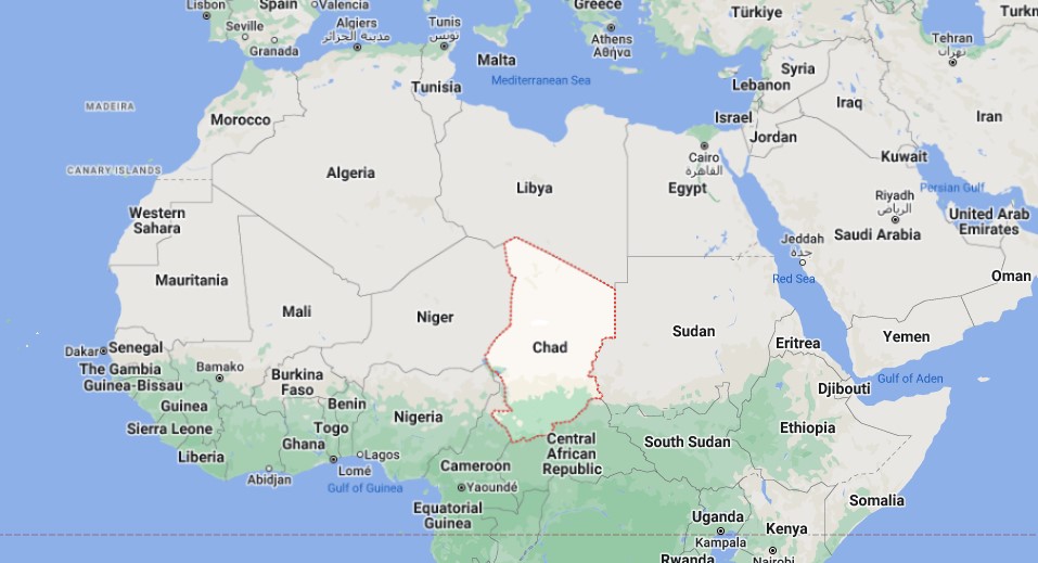 Chad merupakan sebuah negara pedalaman yang terletak di tengah-tengah Afrika Utara yang berkeluasan lebih kurang 1.3 juta km2. Chad memiliki sempadan sepanjang lebih kurang 6,000 km. Chad juga antara negara yang memiliki zon empat iklim iaitu dataran kering yang luas di tengah, kawasan gurun di utara, pergunungan yang kering di barat laut dan dataran rendah tropika di selatan.